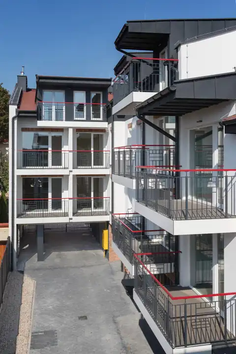 W kameralnej inwestycji zaprojektowano 16 mieszkań o pow. od 29,9 m2 do 57,91 m2, sześć indywidualnych garaży oraz lokal użytkowy na parterze.