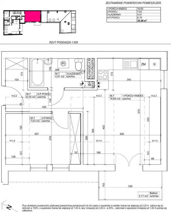- Charakterystyka mieszkania 35.38 m2, 2 pokoje