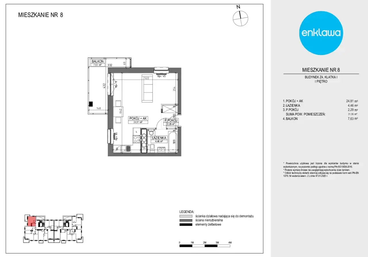- Charakterystyka mieszkania 31.56 m2, 3 pokoje