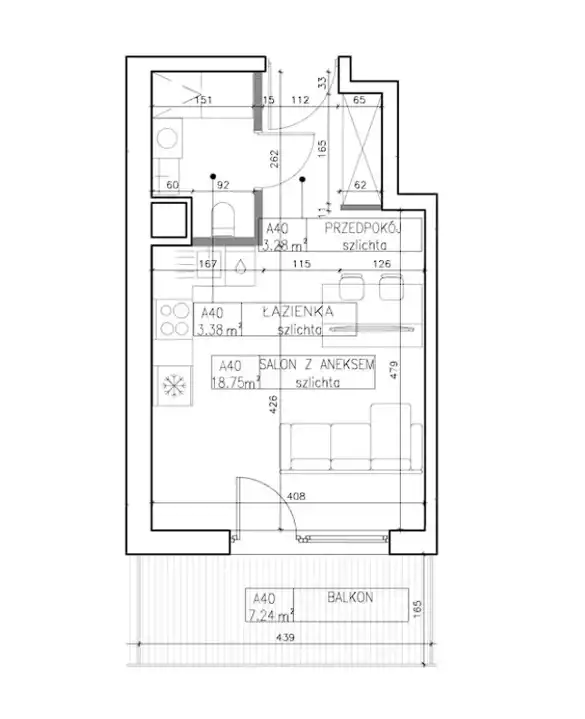 - Charakterystyka mieszkania 25.3 m2, 1 pokój