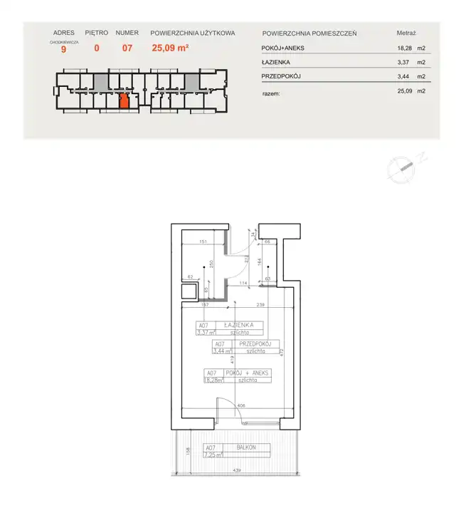- Charakterystyka mieszkania 25.09 m2, 1 pokój