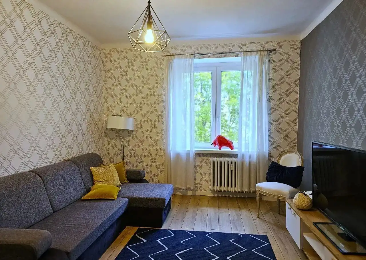 Mieszkanie (49 m2) znajduje się w bloku z cegły, jest dwustronne, zawiera salon, sypialnię/pokój do pracy, oddzielną, przestronną kuchnię, przedpokój oraz łazienkę z wanną i toaletą.