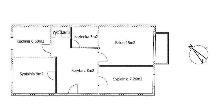 - Charakterystyka mieszkania 49.66 m2, 3 pokoje