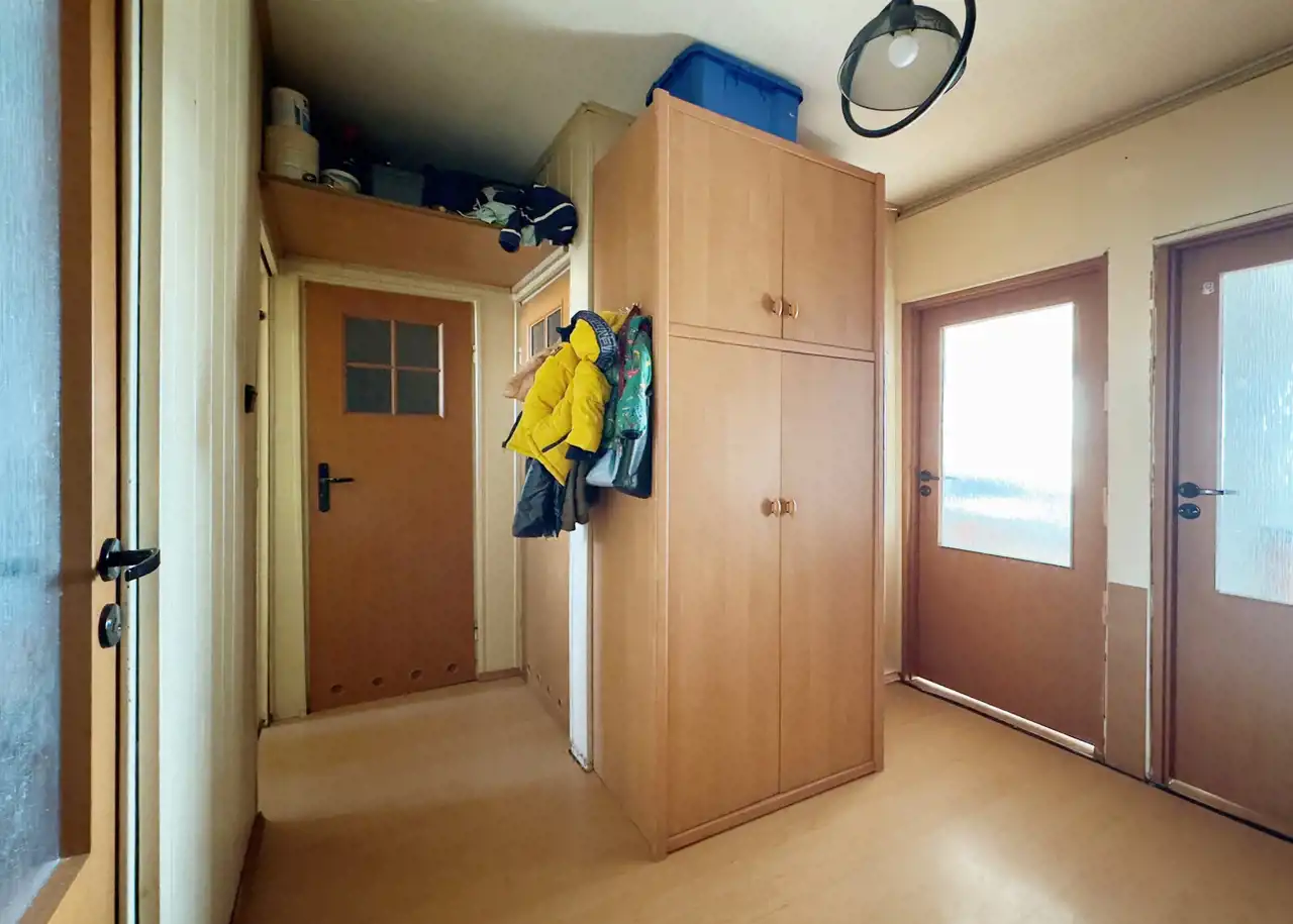 - Wykończenie: we wszystkich pokojach panele, plastikowe okna, całość do odświeżenia lub własnej adaptacji.