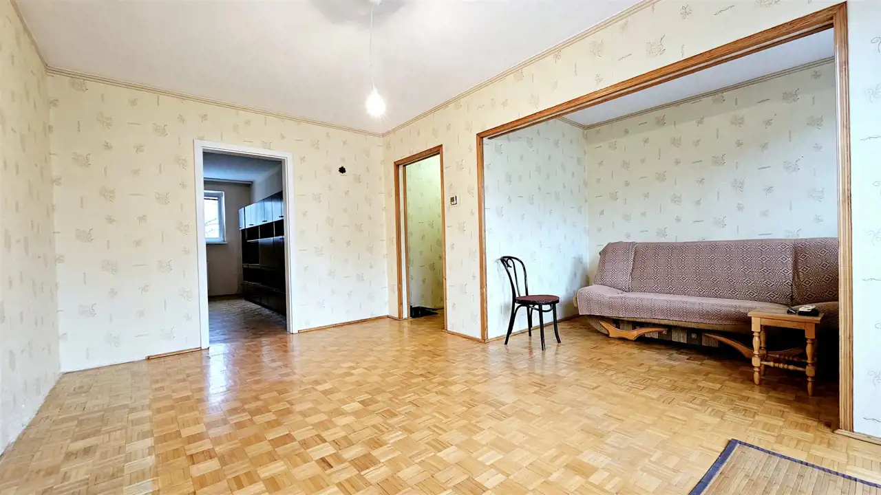 W ofercie sprzedaży mieszkanie dwupokojowe (możliwość wyodrębnienia 3 pokoju) położone na II piętrze ocieplonego bloku. Mieszkanie dwustronne, jeden z pokoi przejściowy.
