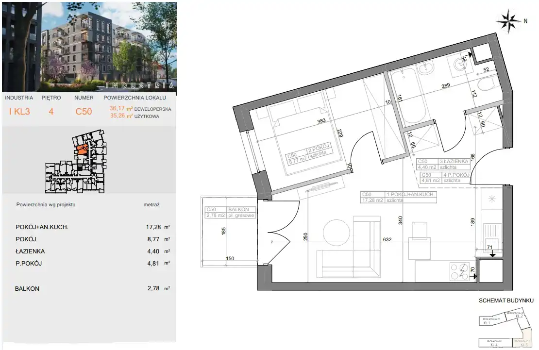 - Charakterystyka mieszkania 35.26 m2, 2 pokoje