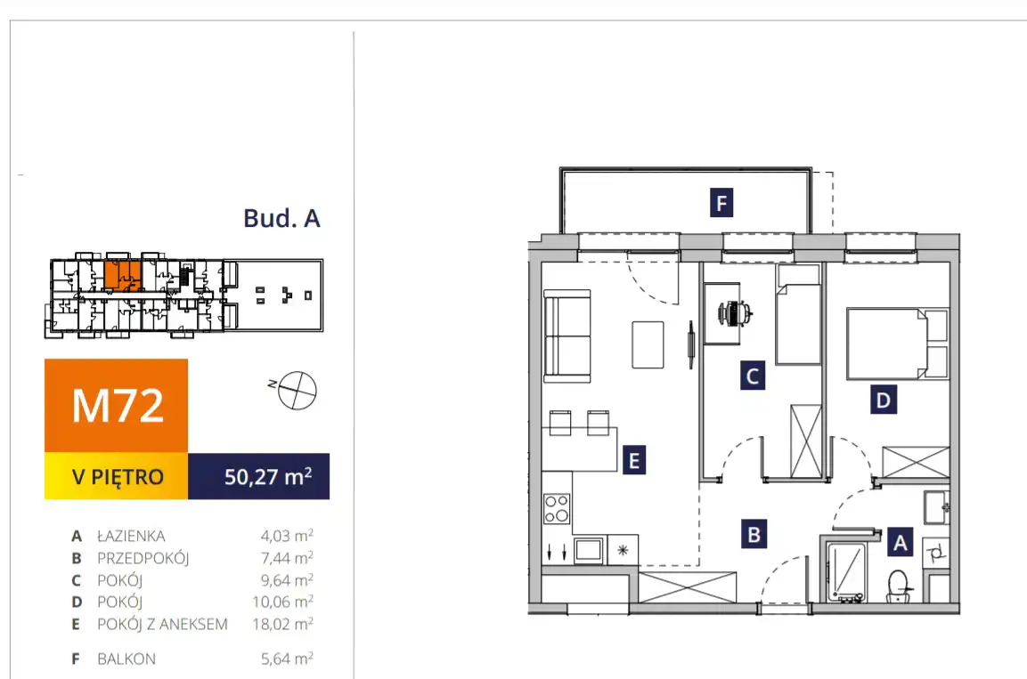 - Charakterystyka mieszkania 50.27 m2, 3 pokoje