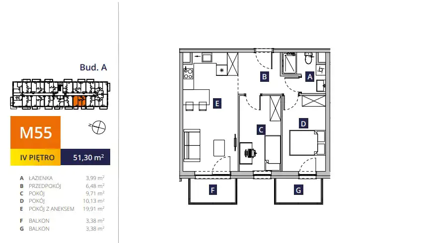 - Charakterystyka mieszkania 51.3 m2, 3 pokoje