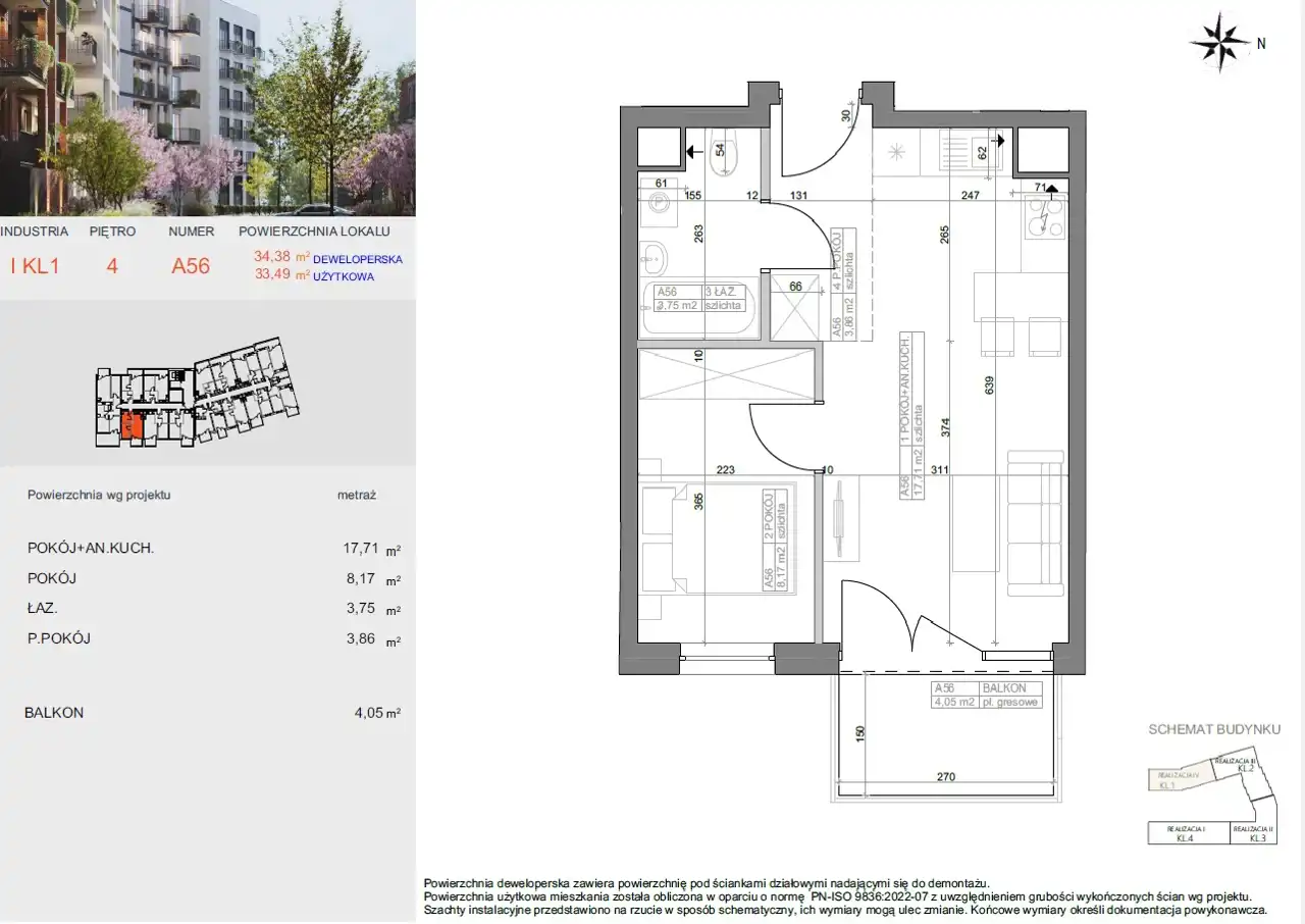 - Charakterystyka mieszkania 33.49 m2, 2 pokoje