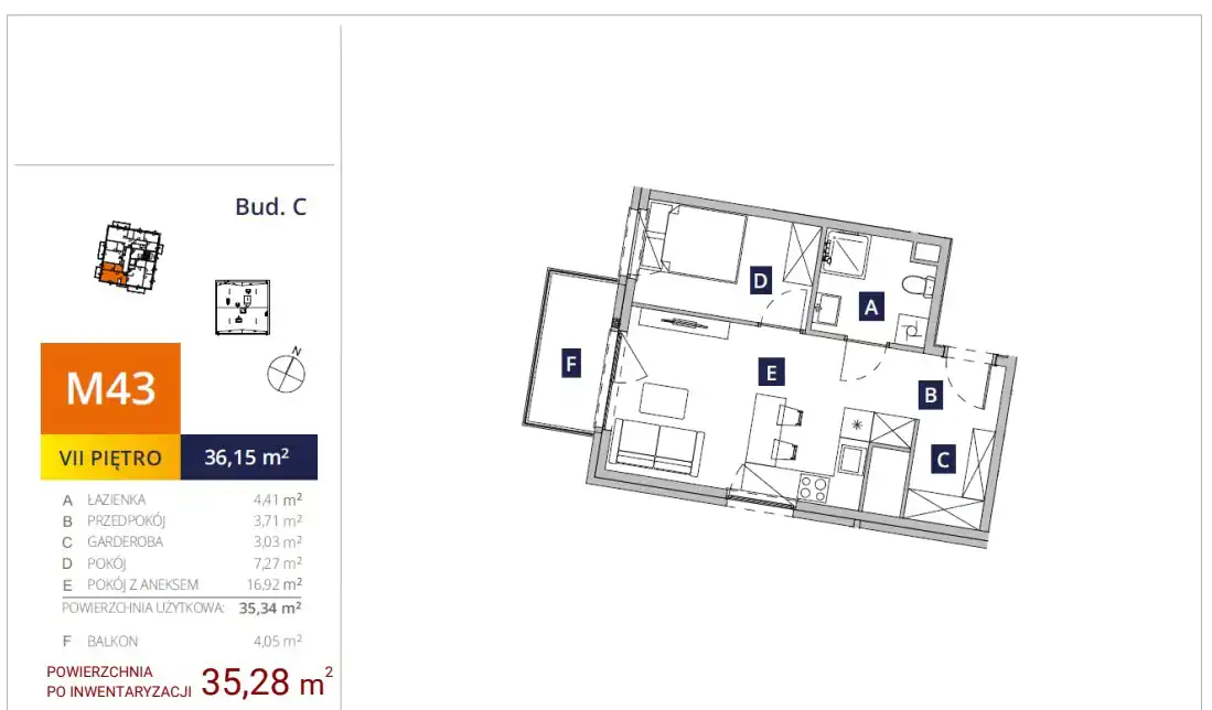 - Charakterystyka mieszkania 35.28 m2, 2 pokoje