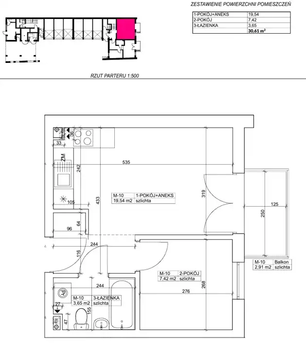 - Charakterystyka mieszkania 30.61 m2, 2 pokoje