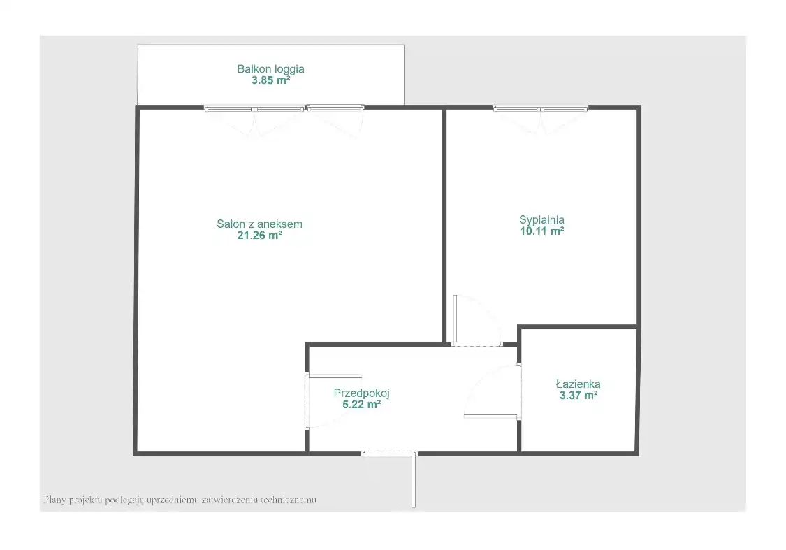 Przestronny salon z aneksem, sypialnia, przedpokój a także łazienka i WC.