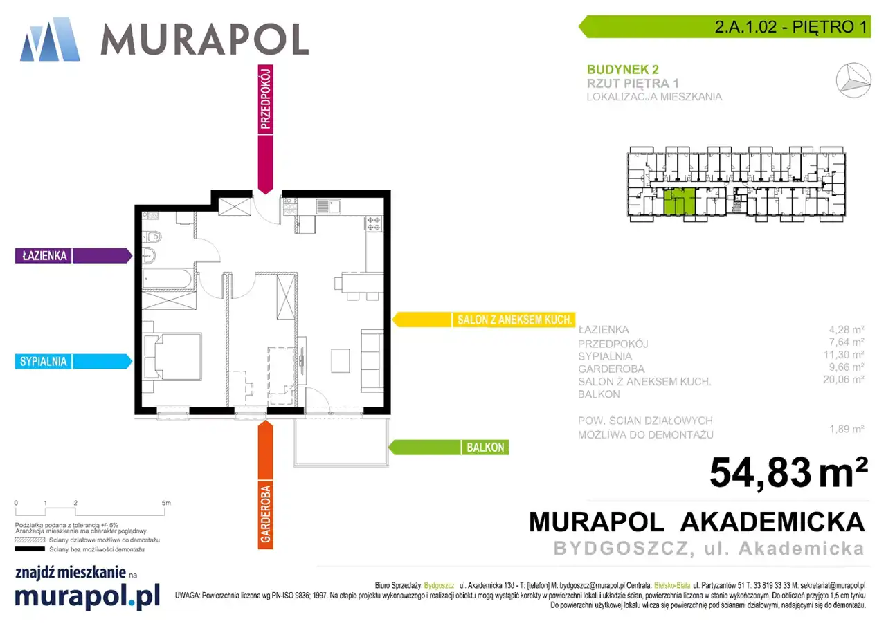 - Charakterystyka mieszkania 54.83 m2, 2 pokoje