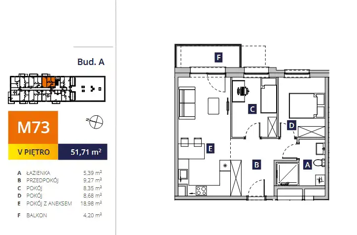 - Charakterystyka mieszkania 51.71 m2, 3 pokoje
