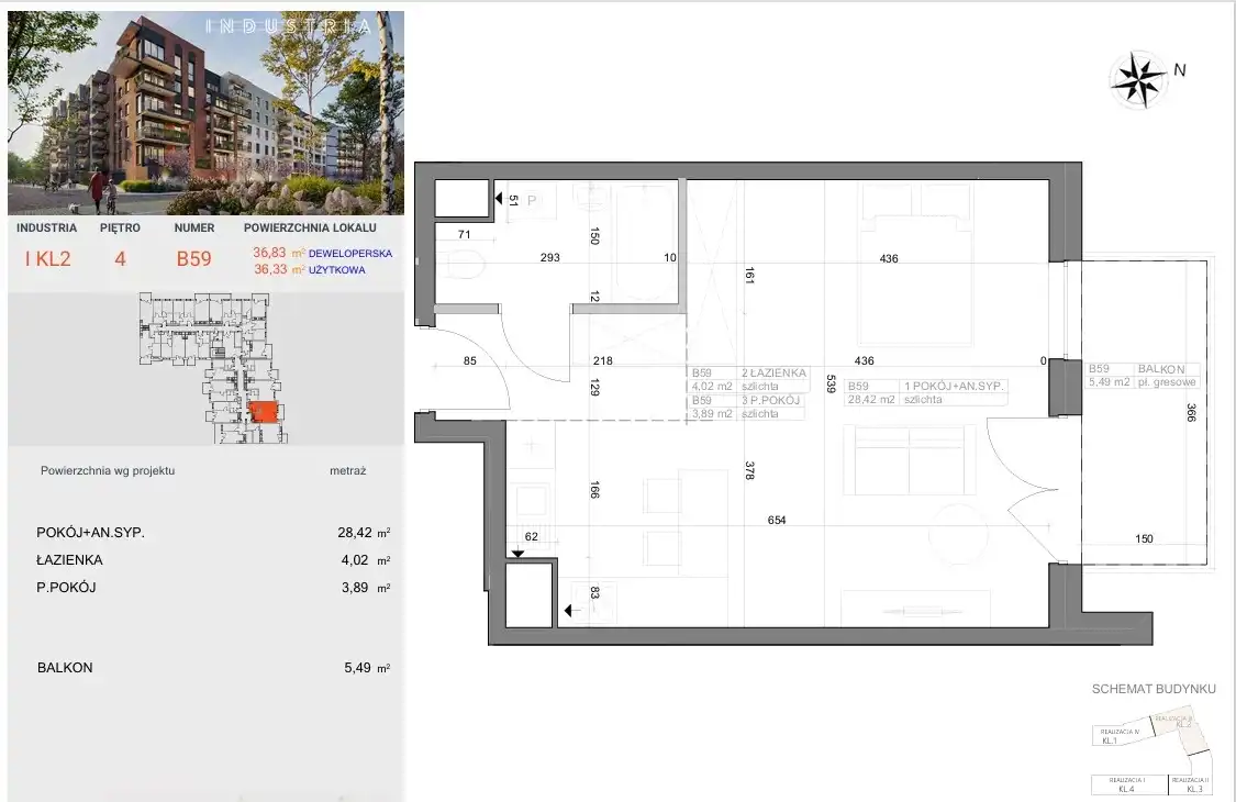 Mieszkanie B59 to esencja nowoczesnego projektowania – harmonijne proporcje, logiczny układ, światło grające po ścianach. Tutaj prostota ma wymiar elegancji, a funkcjonalność staje się stylem życia. Zaprojektowane zgodnie z normą PN-ISO 9836:2022-07, wykończone w standardzie deweloperskim, z możliwością indywidualnej aranżacji – gotowe, by stało się Twoją własną historią.