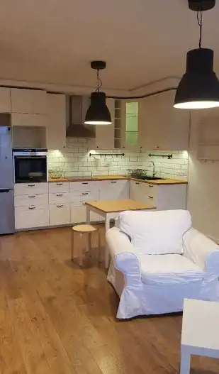 Lokal w pełni umeblowany i wyposażony w sprzęty AGD – lodówka marki Samsung, piekarnik i zmywarka marki Siemens, płyta indukcyjna oraz pralka marki Amica.