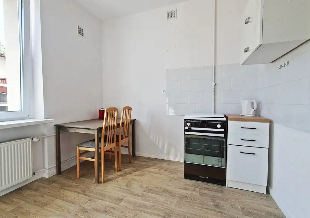 Mieszkanie znajduje się na 1. piętrze niskiego, ceglanego budynku z 1959 roku. Nieruchomość posiada 2 duże, przestronne pokoje, oddzielną dużą kuchnię z oknem, przedpokój oraz łazienkę. Konstrukcja i układ pozwala na wygospodarowanie trzeciego pokoju, dzięki czemu zyski za wynajem będą jeszcze większe.
