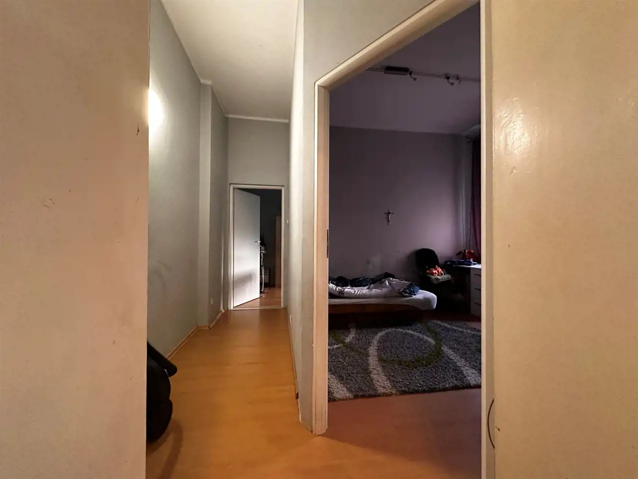 Mieszkanie składa się z 3 sypialni, kuchni, łazienki, WC oraz przedpokoju.