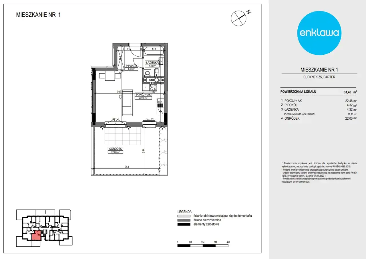 - Charakterystyka mieszkania 31.57 m2, 1 pokój