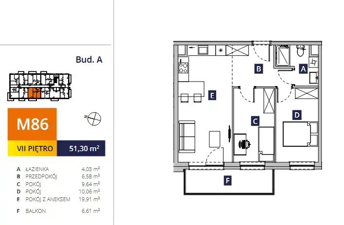 - Charakterystyka mieszkania 51.3 m2, 3 pokoje