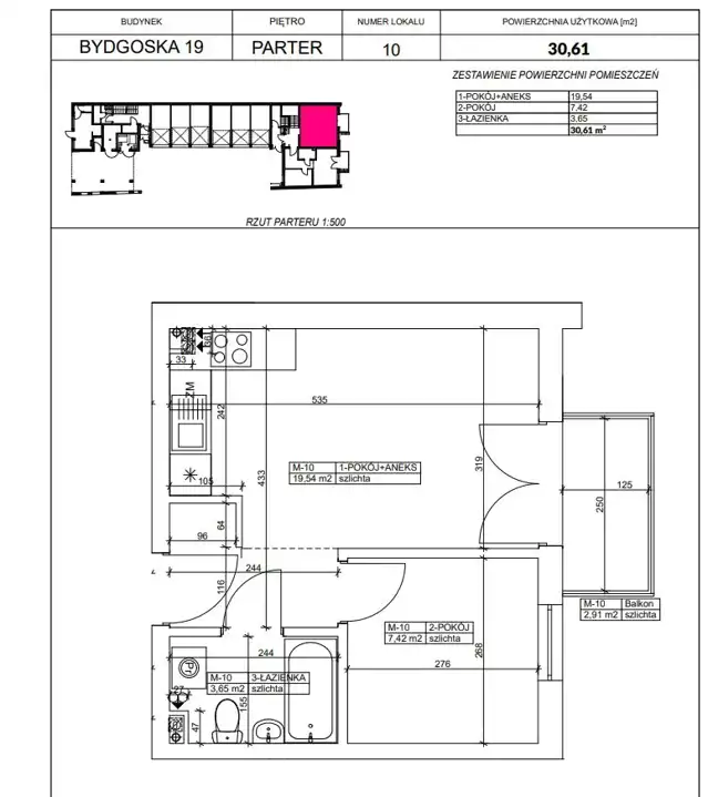 - Charakterystyka mieszkania 30.61 m2, 2 pokoje