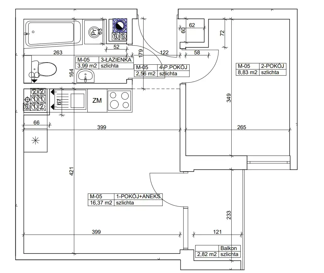 - Charakterystyka mieszkania 31.75 m2, 2 pokoje