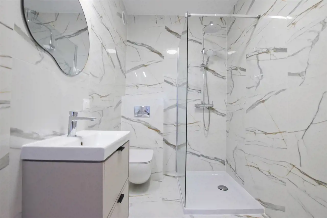Ściany - gładzie gipsowe, kafelki;