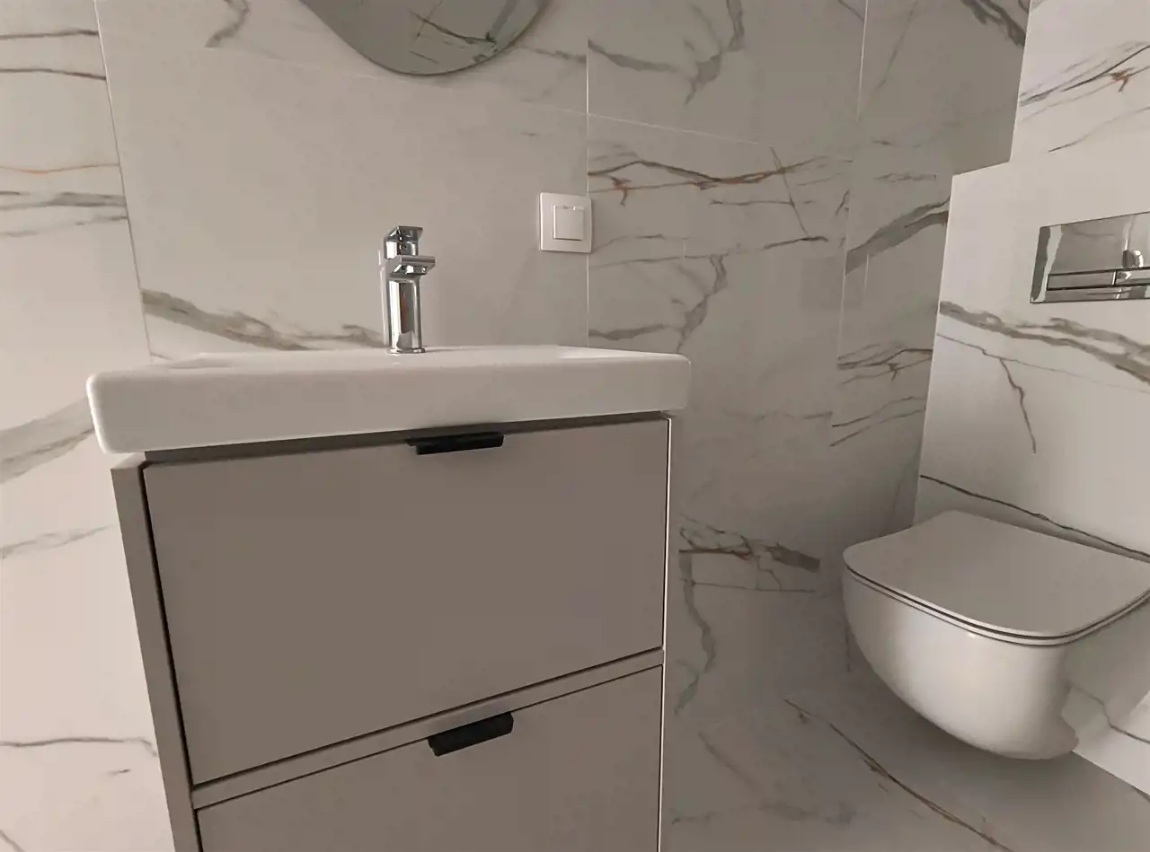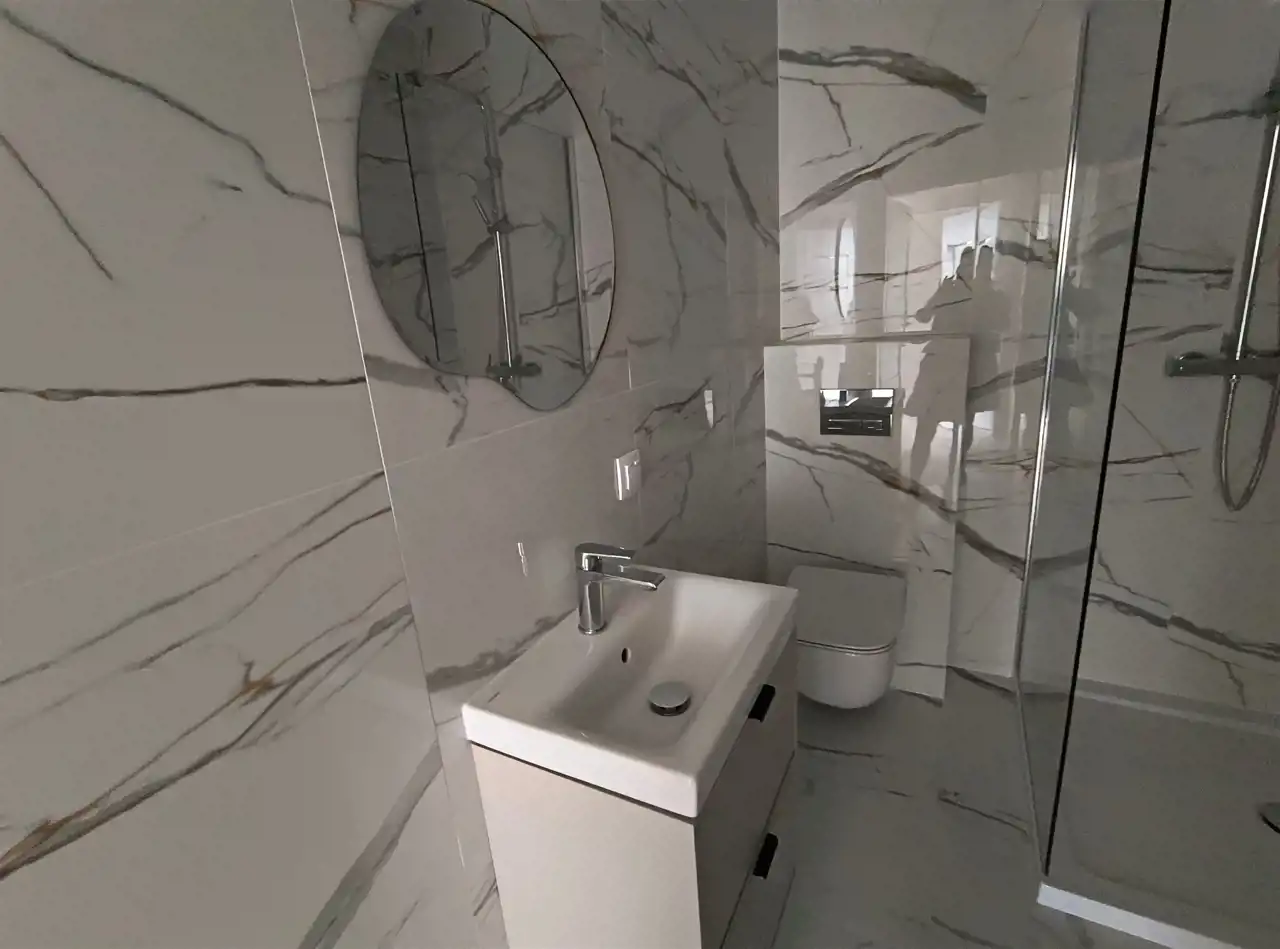 Mieszkanie zostało wykończone pod klucz z dużą dbałością o detale, w stylu łączącym funkcjonalność z nowoczesną estetyką.