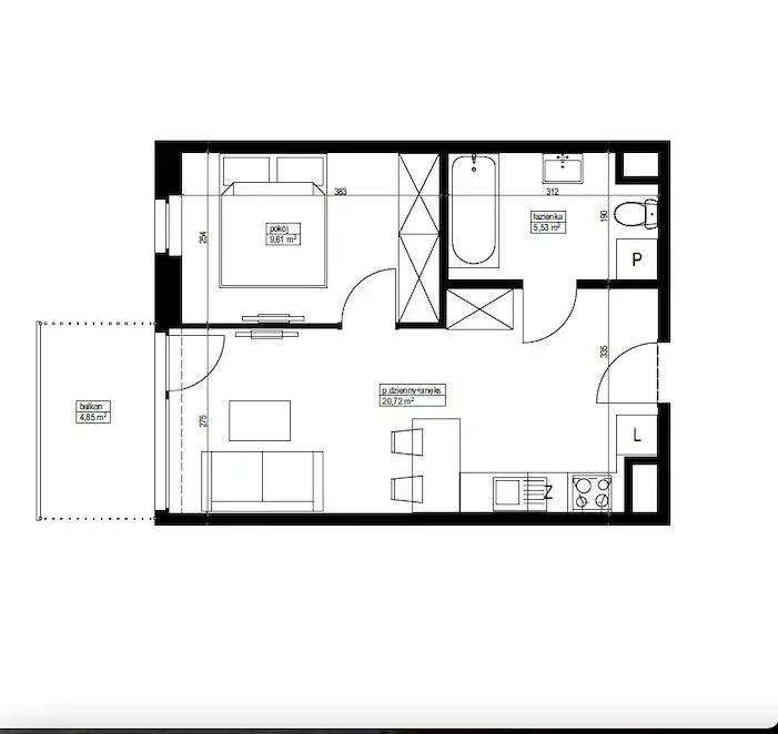 - Rozkład mieszkania 1p piętro