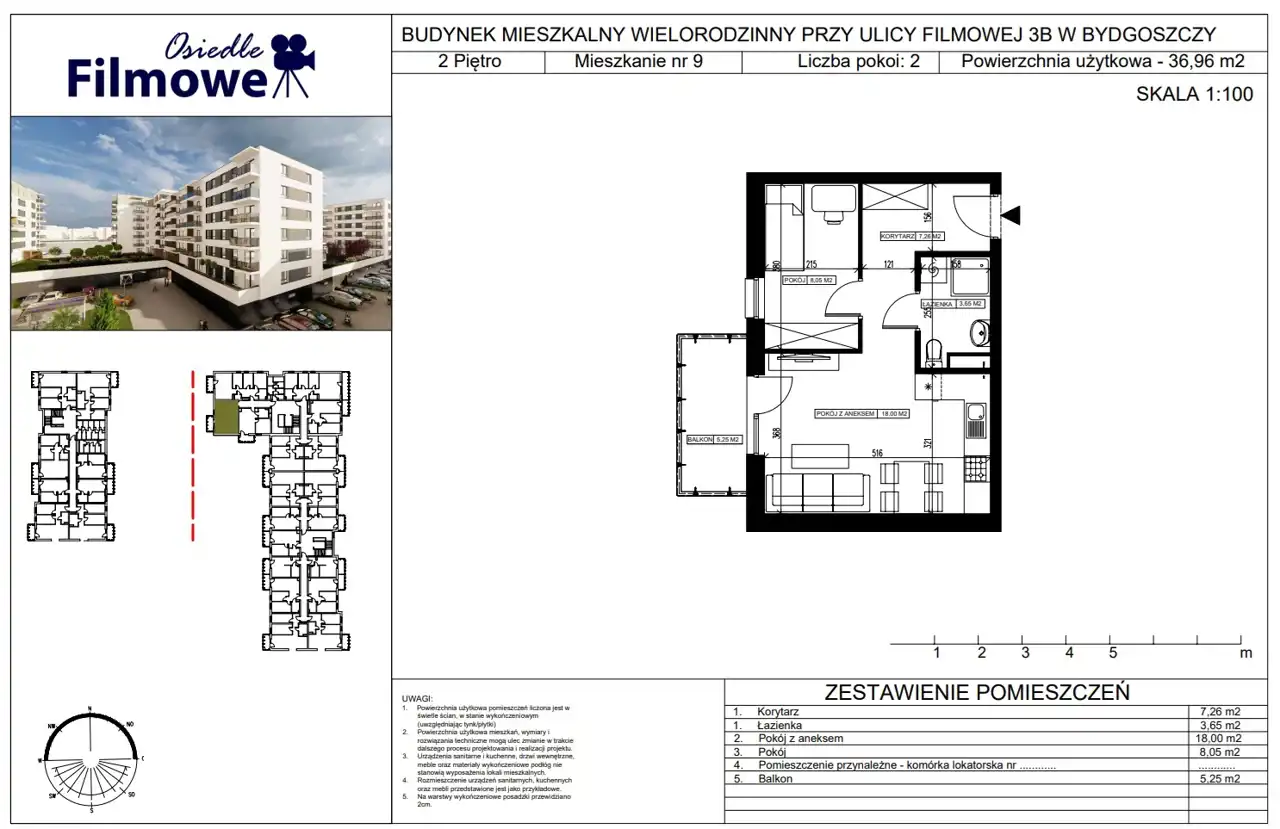 - Charakterystyka mieszkania 36.96 m2, 2 pokoje