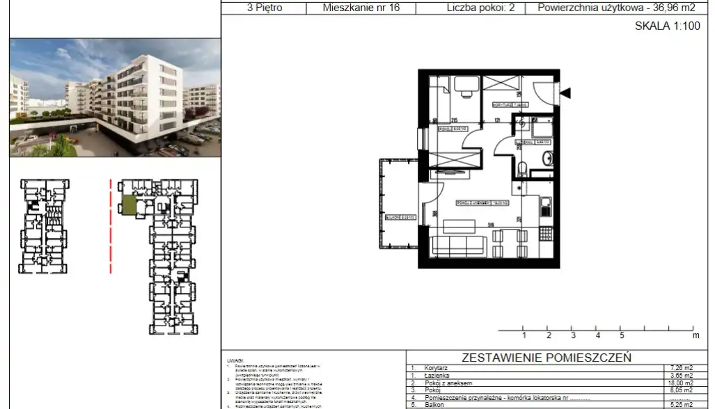 - Charakterystyka mieszkania 36.96 m2, 2 pokoje