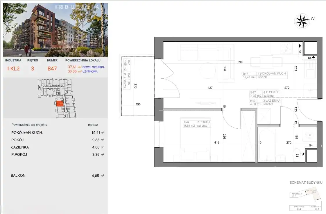 - Charakterystyka mieszkania 36.65 m2, 2 pokoje