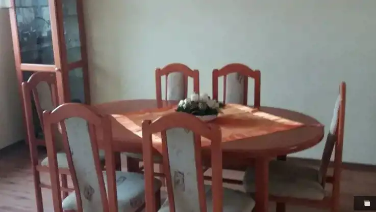 Całkowicie umeblowane i wyposażone ( meble drewniane, zaciemniające rolety zewnętrzne i wewnętrzne we wszystkich oknach, pralka, cała kuchnia ze sprzętem: zmywarka [na gwarancji], piekarnik, płyta, lodówka, w przedpokoju i sypialni szafy typu komandor). Piękna loggia ponad 11m2 od południowego zachodu.
