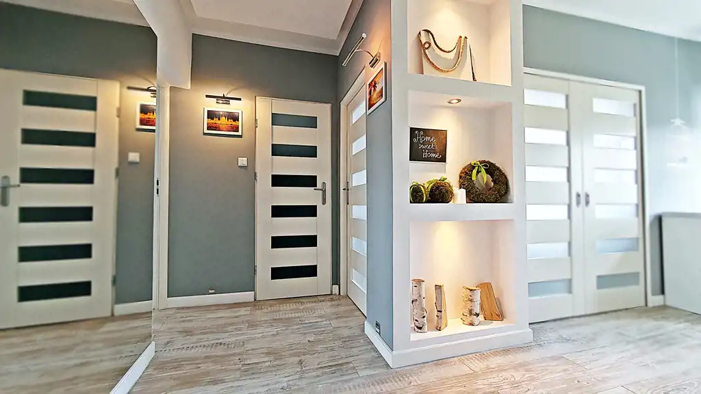 - przedpokój 5,14 m2 - z piękną dekoracyjną wnęką na wejściu, z podświetleniami LED, ogromnym lustrem, pięknie odbijającym wschodzące słońce