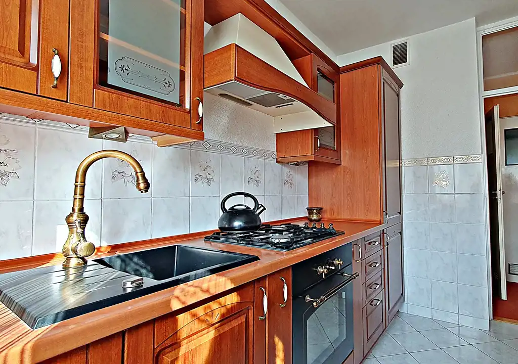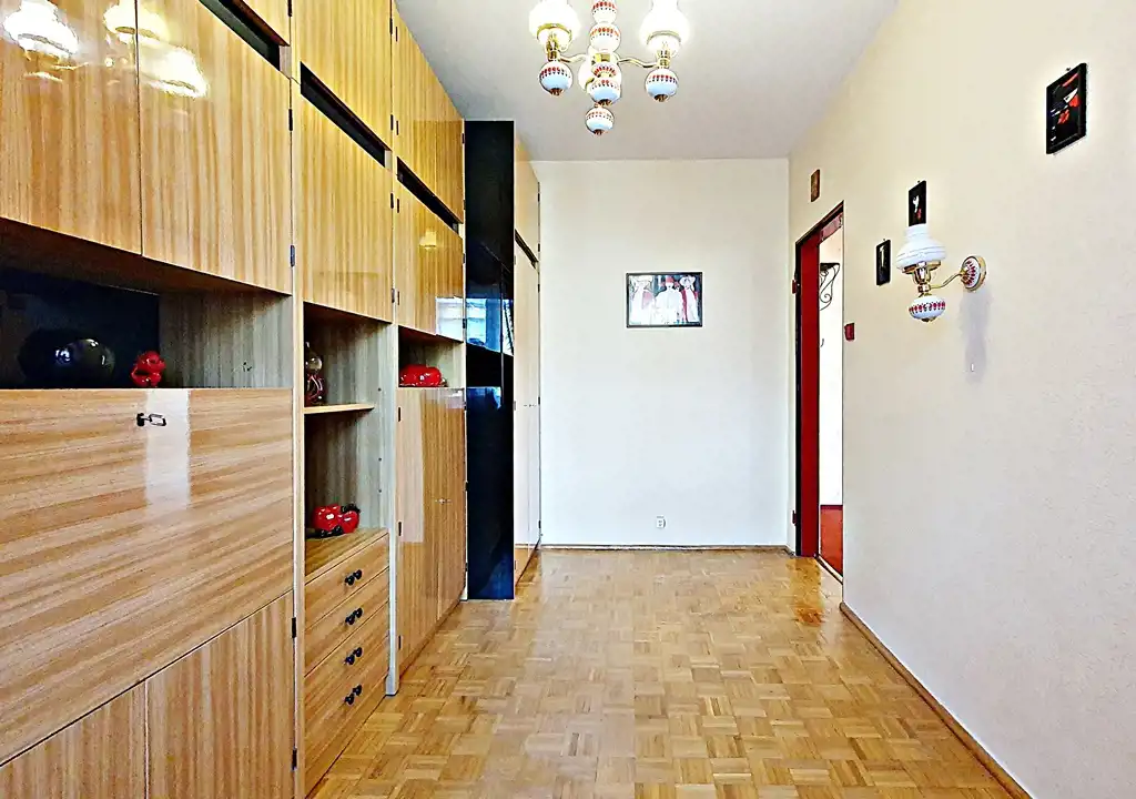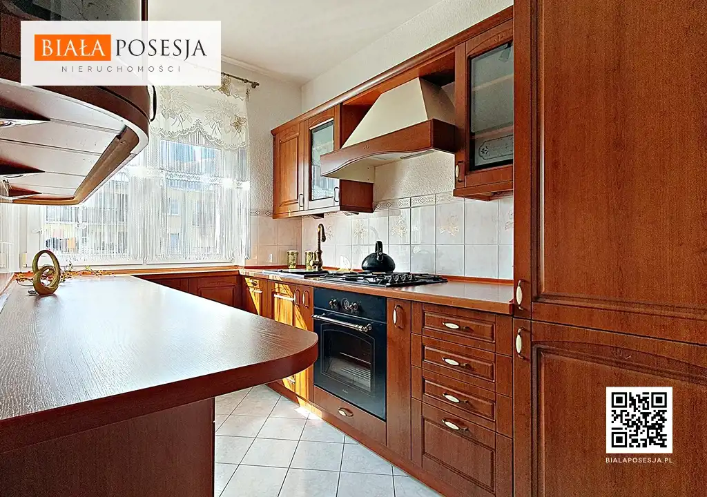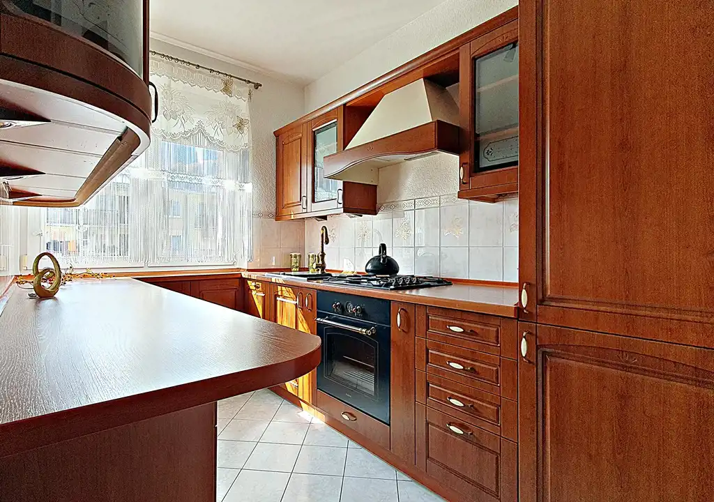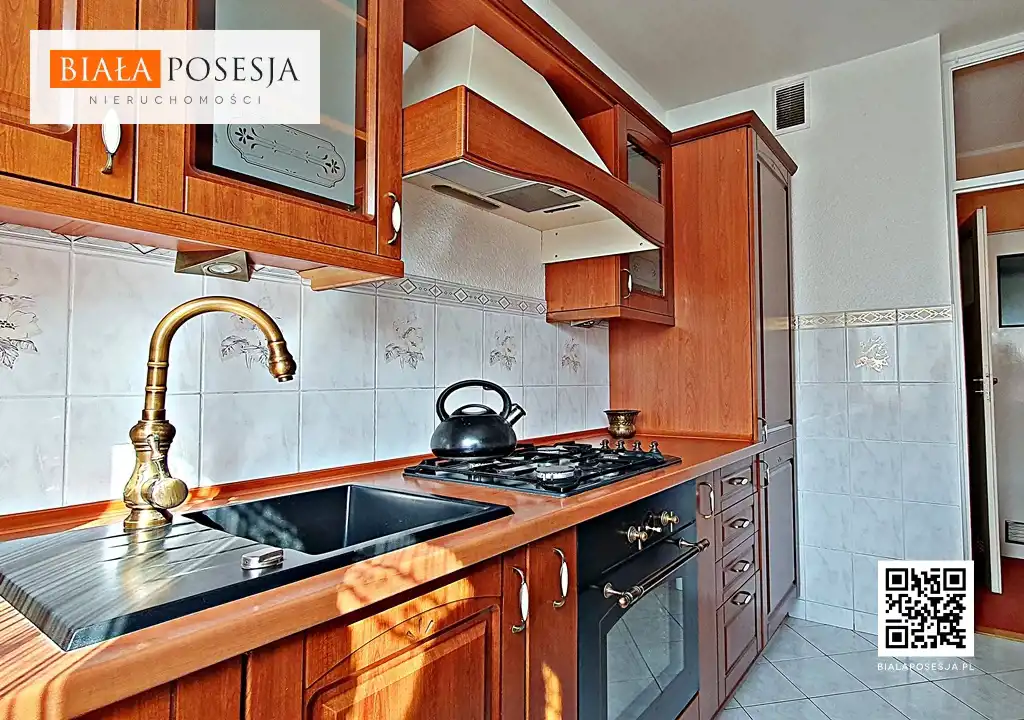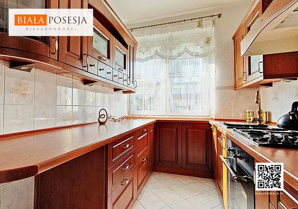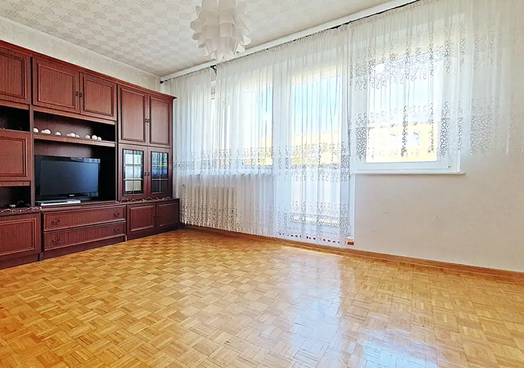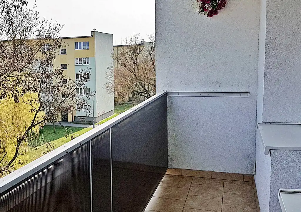 W pokojach i przedpokoju parkiet, w kuchni, łazience i na balkonie gres. Na sufitach gładzie. Kuchnia po remoncie z 2015 r. z meblami na wymiar i sprzętami AGD w cenie. Łazienka i WC świeżo po remoncie w 2022 r. Przedpokój z pojemną szafą typu Komandor. Drzwi antywłamaniowe, okna PCV.