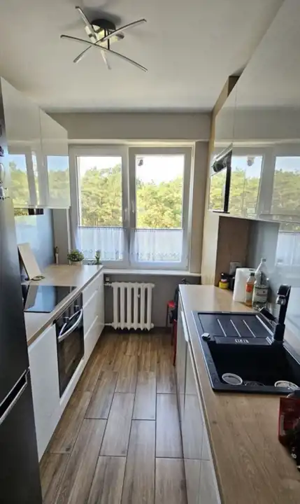 W mieszkaniu nie wymaga wkładu finansowego. Kuchnia wyposażona w zabudowę stworzoną na wymiar oraz niezbędny dziś w każdym domu sprzęt AGD.