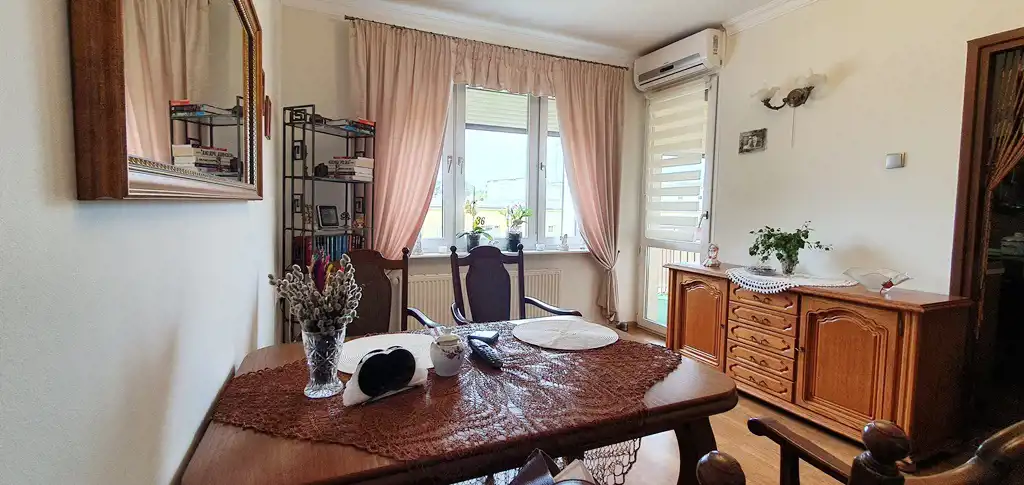 Okna w salonie, jednej sypialni oraz kuchni z roletami elektrycznymi. Zamontowano klimatyzację.