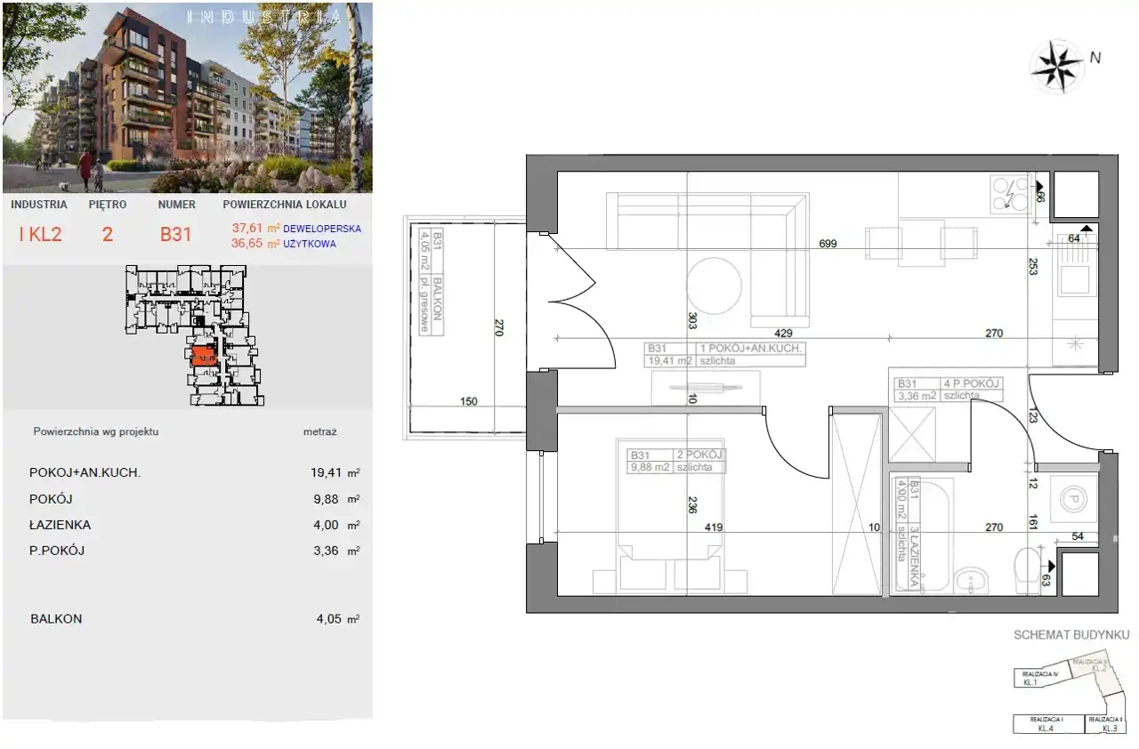 - Charakterystyka mieszkania 36.65 m2, 2 pokoje