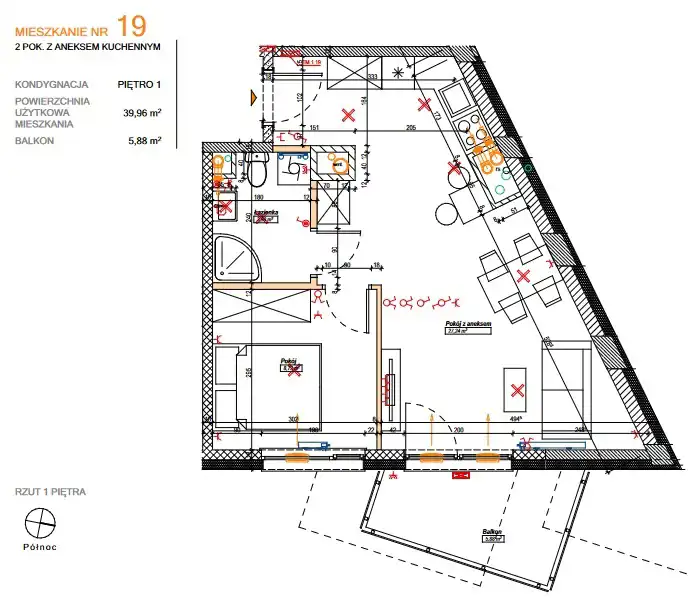 - Rozkład mieszkania 1p piętro