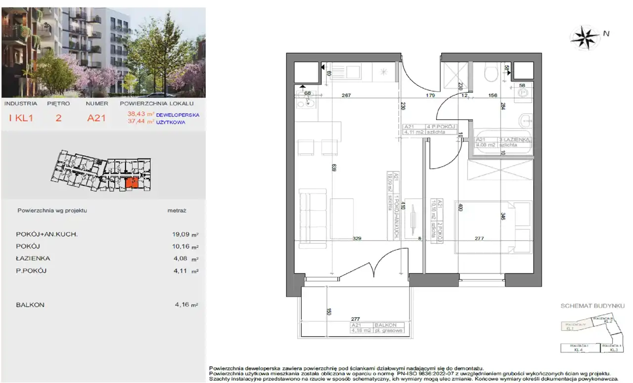 - Charakterystyka mieszkania 37.44 m2, 2 pokoje