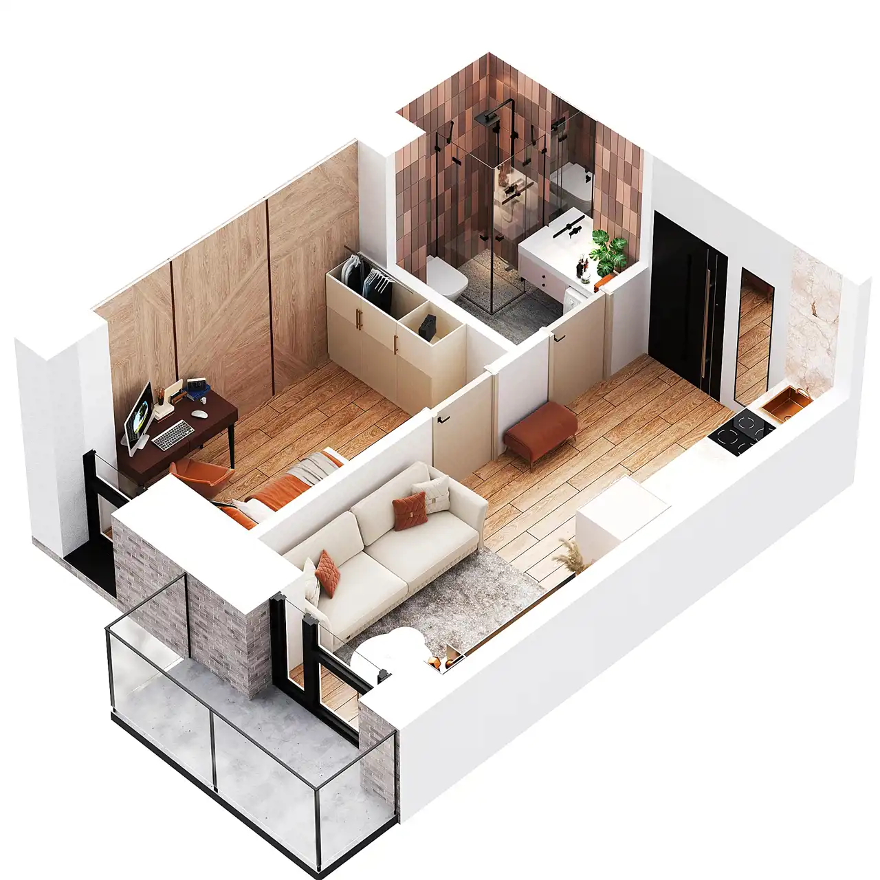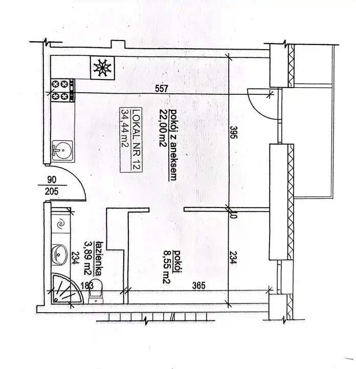 - Charakterystyka mieszkania 34.44 m2, 2 pokoje