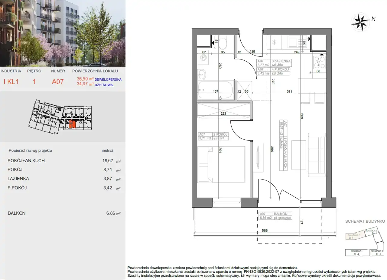 - Charakterystyka mieszkania 37.44 m2, 2 pokoje