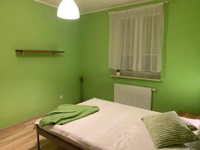Dużo zieleni, 1 min przystanek autobusowy, tramwajowy, żabka, sklepy.