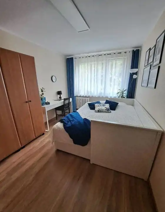 - Układ: przestronny salon, dwie sypialnie, kuchnia, łazienka oraz przedpokój.