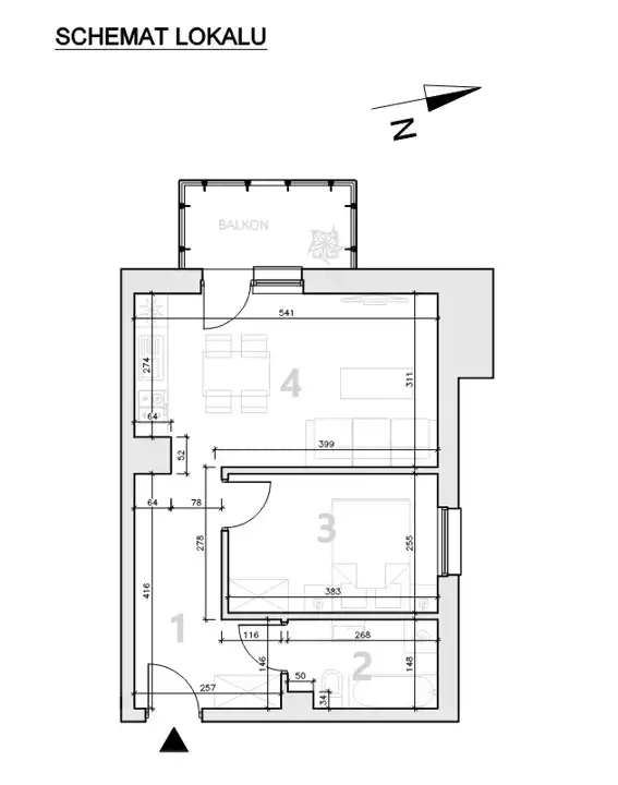 - Charakterystyka mieszkania 37.77 m2, 2 pokoje