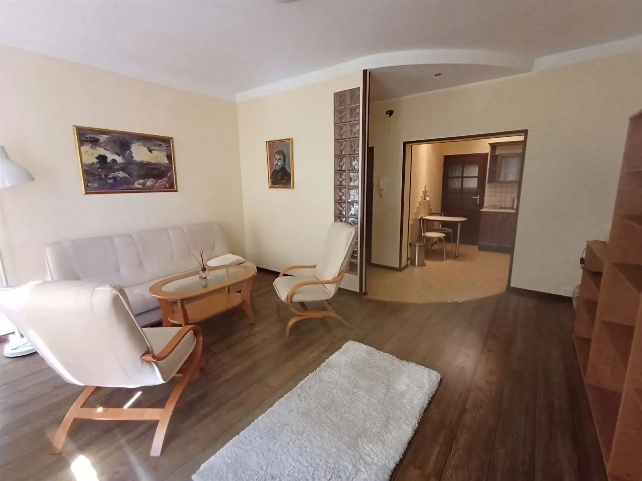 Przestrzeń w pełni umeblowana, salon, kuchnia, łazienka i przedpokój. Wszystko w wysokim standardzie. Bardzo jasne i przestronne miejsce dzięki dużym oknom z widokiem na dziedziniec.