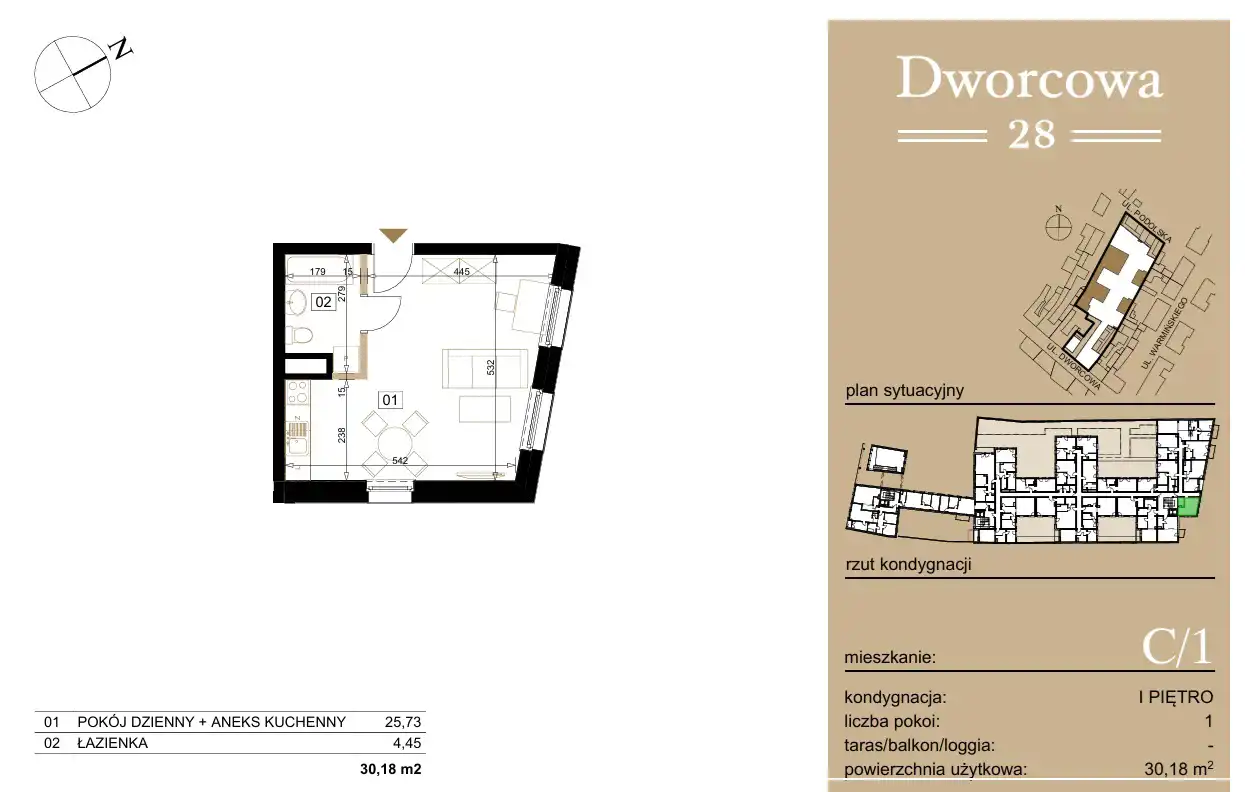 - Charakterystyka mieszkania 30.18 m2, 1 pokój