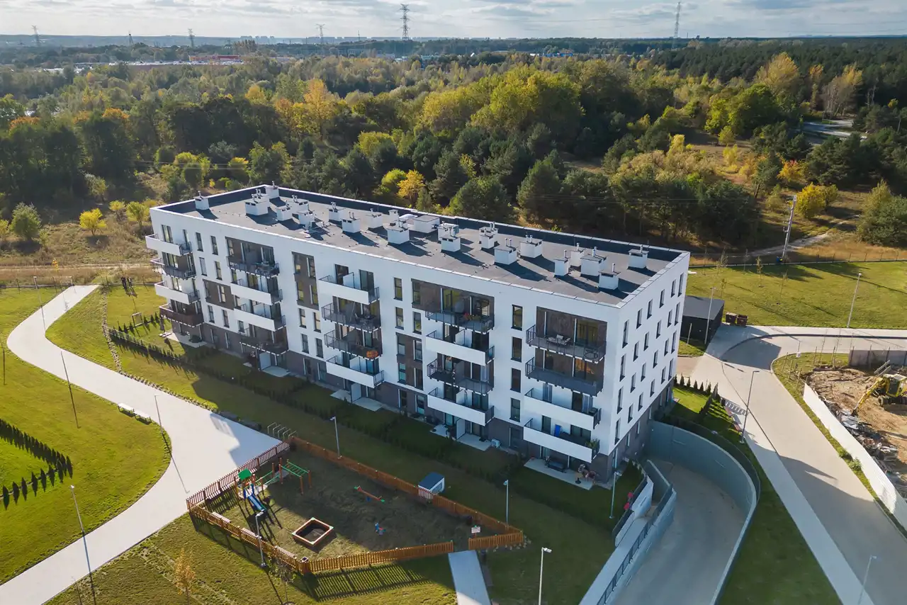 Osiedle jest bardzo przyjazne i zielone, a dojazd tramwajem do centrum zajmie kilkanaście minut.