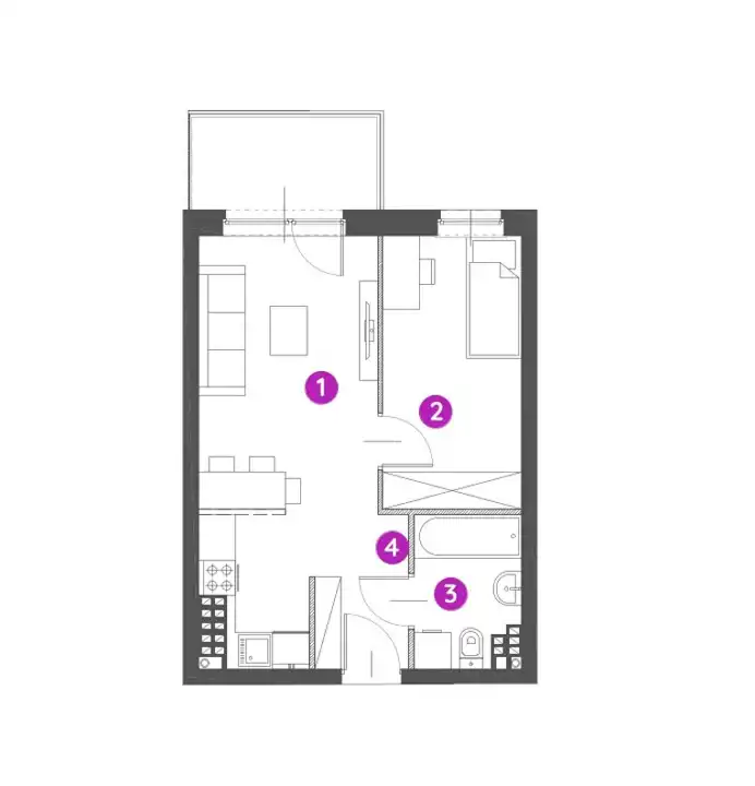- Charakterystyka mieszkania 35.52 m2, 2 pokoje