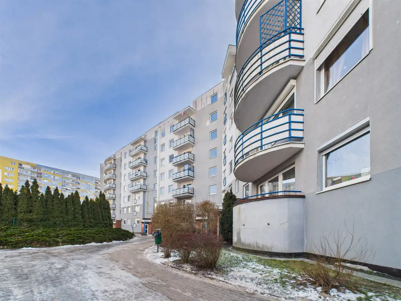 Niski, nowoczesny blok z 2001 roku, w bardzo dobrym stanie technicznym. Wejście zabezpieczone domofonem. Zorganizowane zamknięte osiedle.